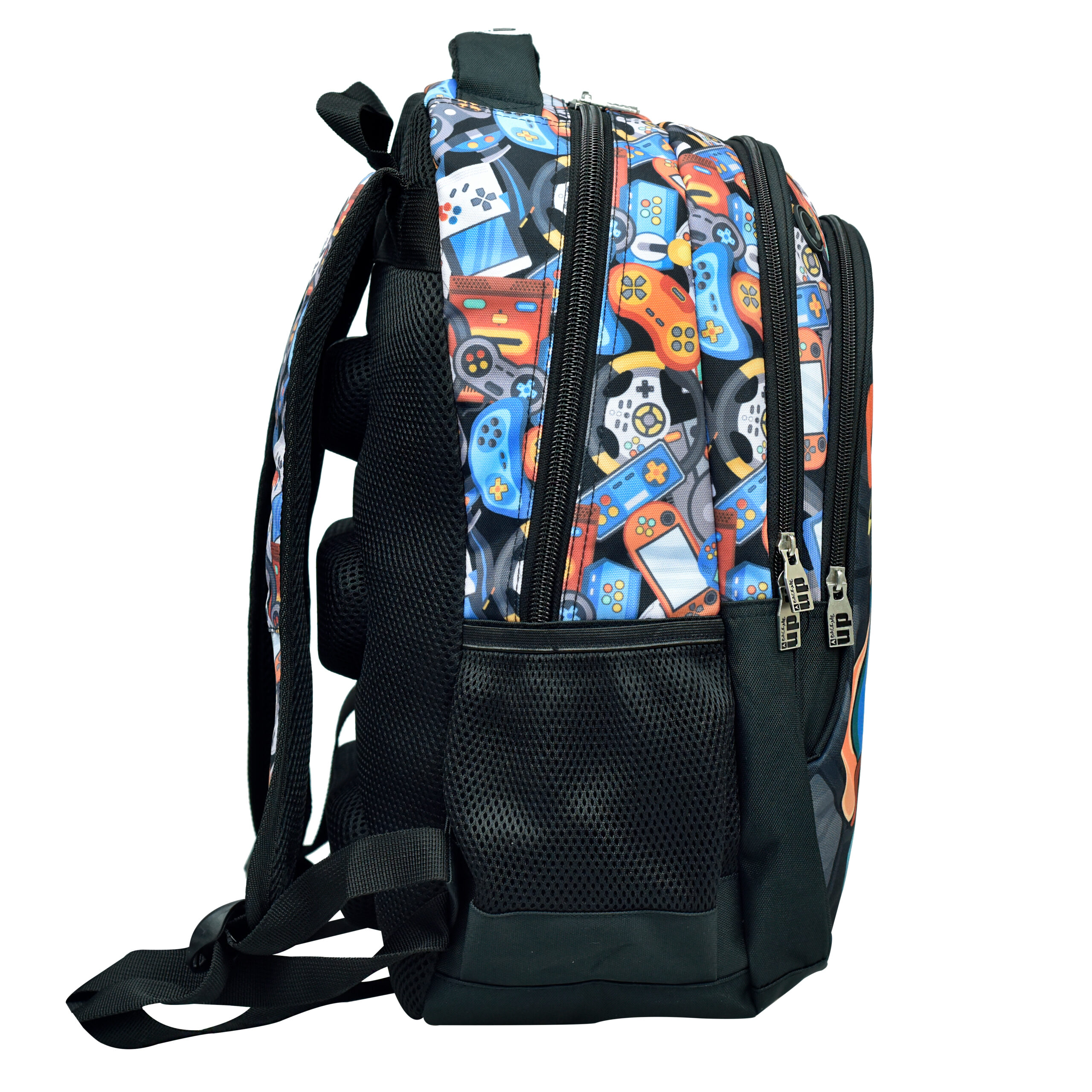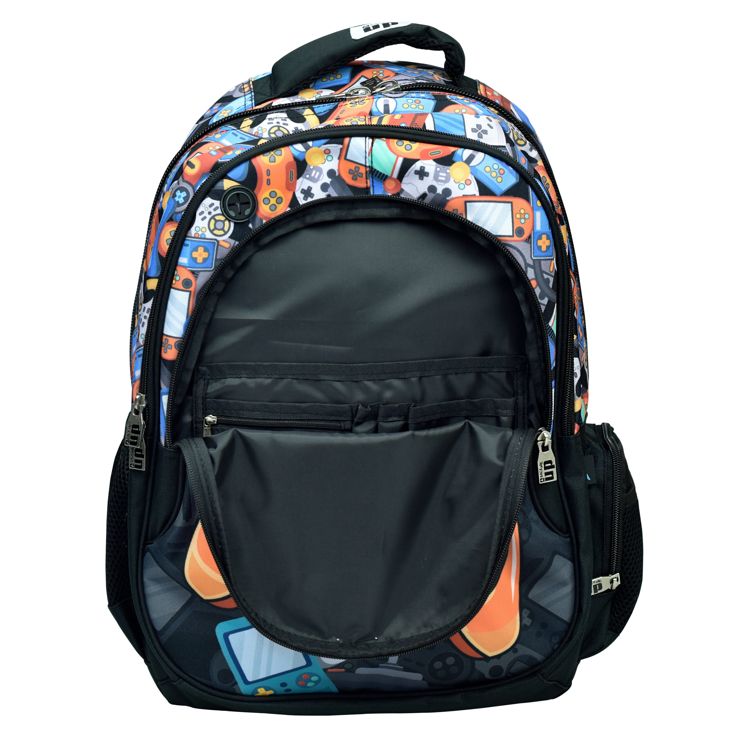 Ghiozdan Back Me UP Game cu dimensiune 48 x 30 x 28 cm cu 3 compartimente, spate ergonomic, buretat si aerisit, barete pentru umeri reglabile, buretate.