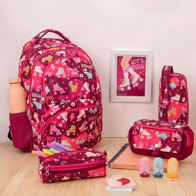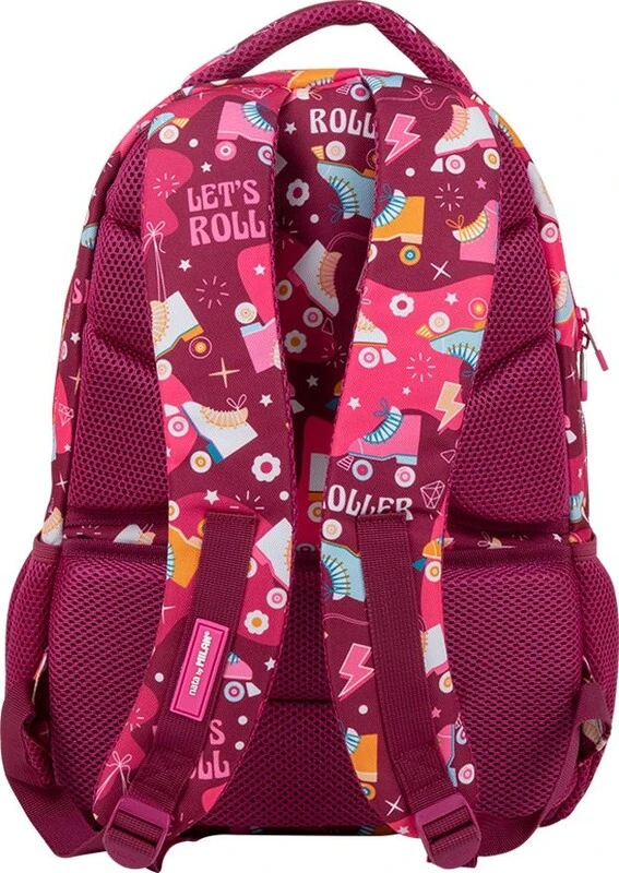 Ghiozdan scolar Role Milan cu 4 fermoare. Seria Fun, in nuante de culoare rosu
