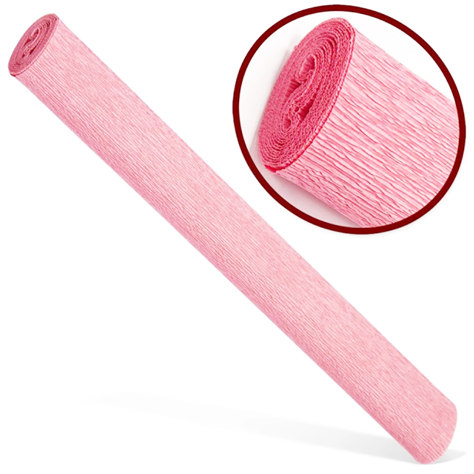 Hartie floristica roz pal pentru realizarea de flori artificiale, ambalaje, decoratiuni. Seamana cu o hartie creponata, dar este mai groasa, flexibila si rezistenta, pentru a permite modelarea si plierea usoara, cu scopul de a obtine diferite forme si efecte.