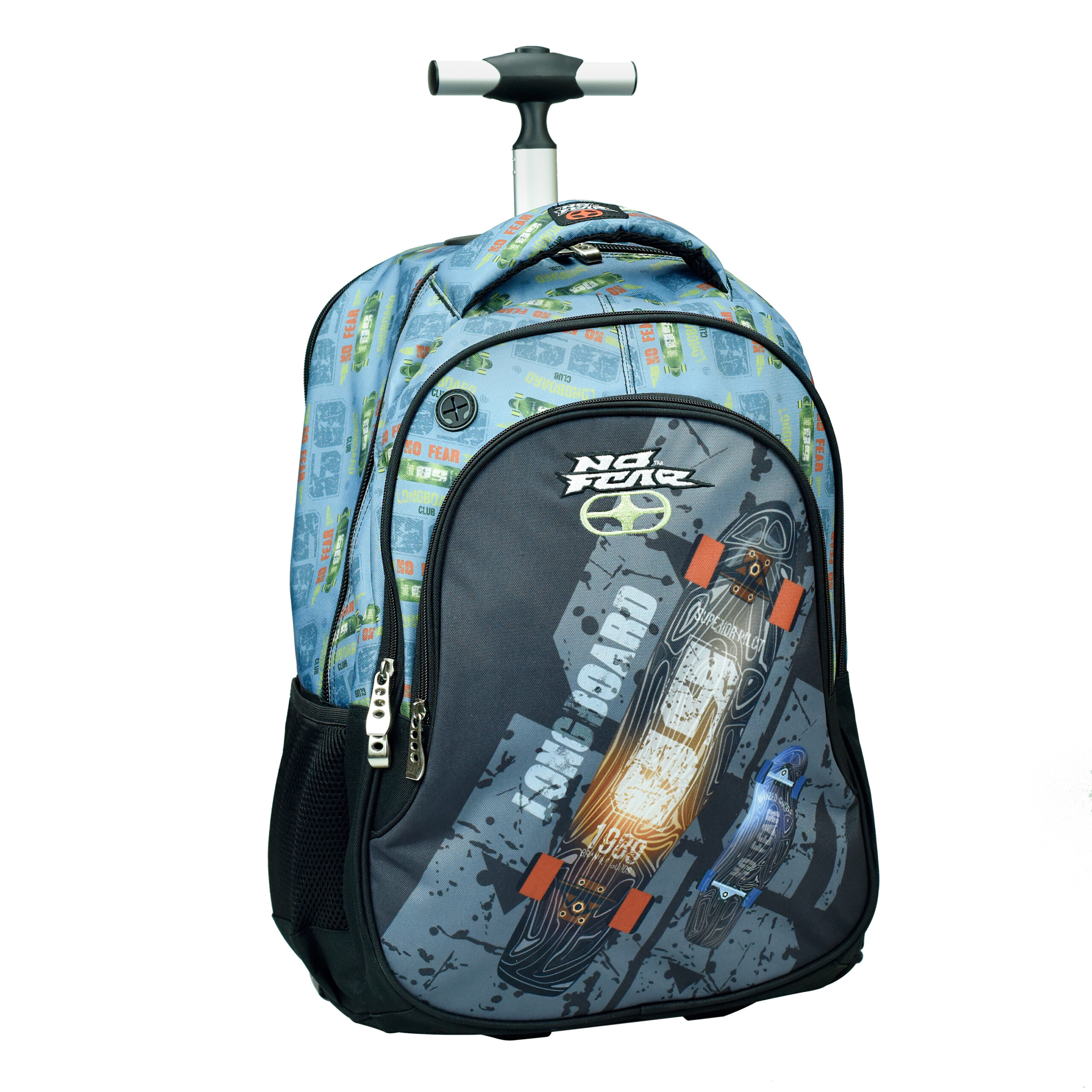 Troler No Fear LongBoard ideal pentru scoala, poate fi folosit ca troler sau ghiozdan. Design modern, multifunctional, compartiment principal spatios, compartiment secundar, buzunar frontal, spate buretat, ergonomic si aerisit, maner buretat, material impermeabil.