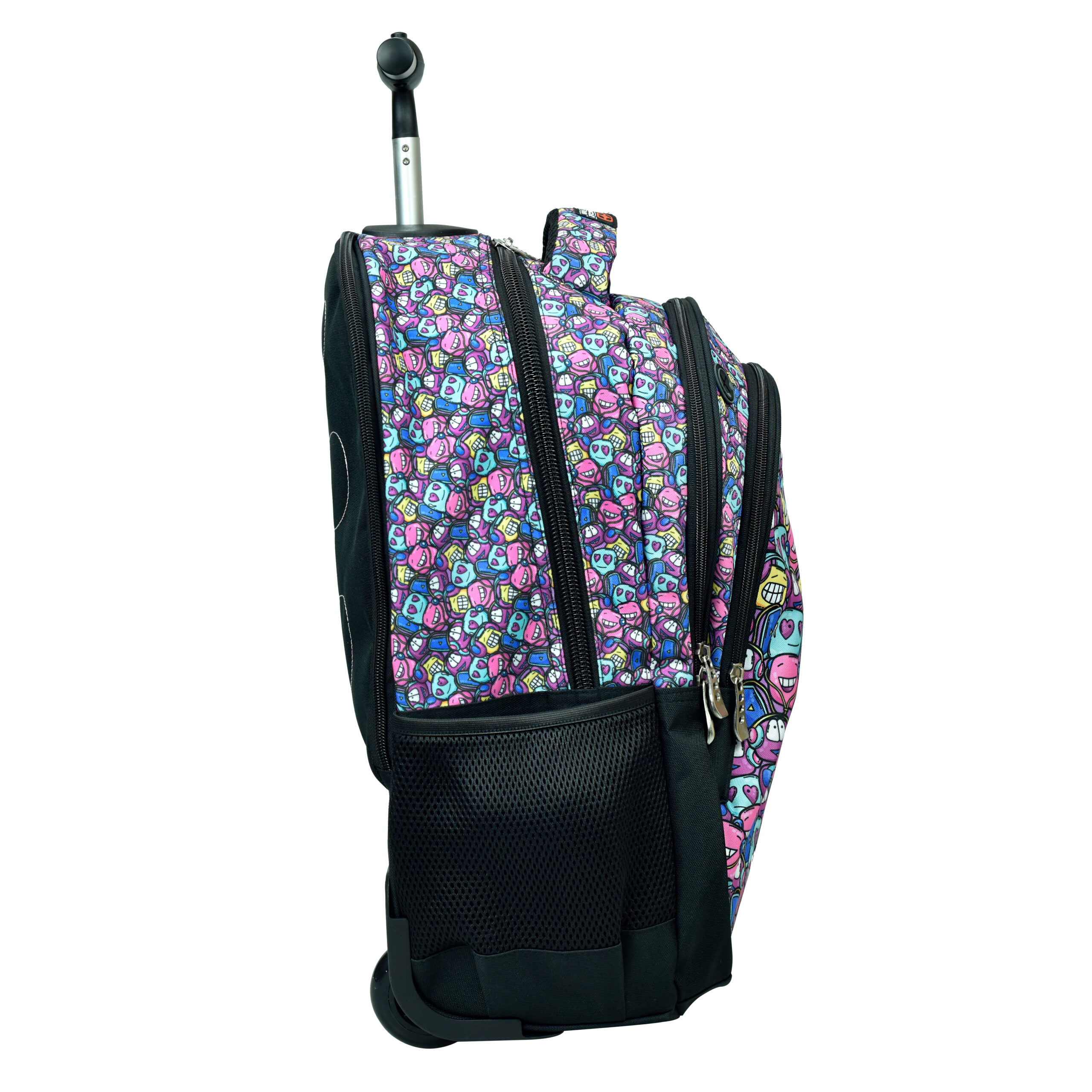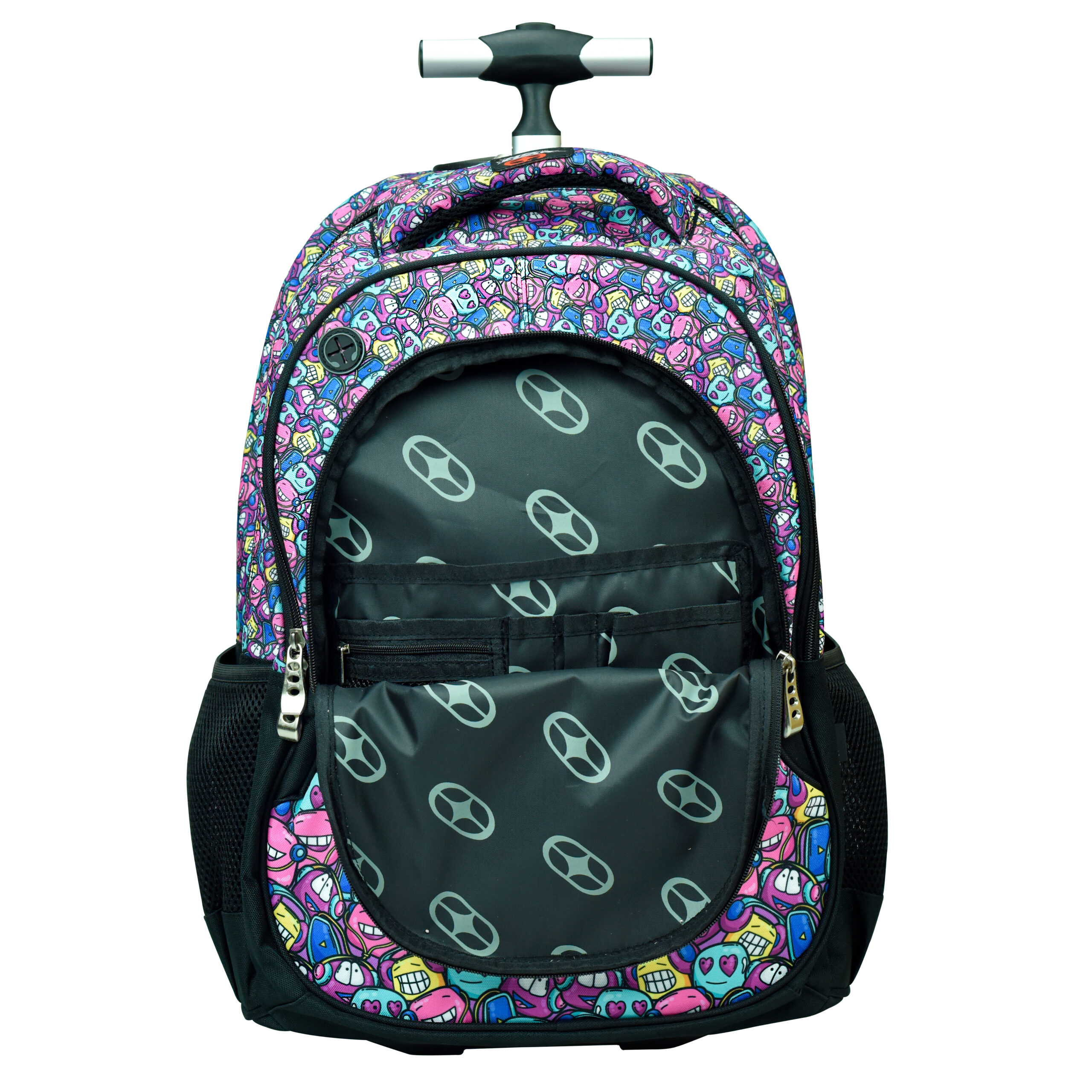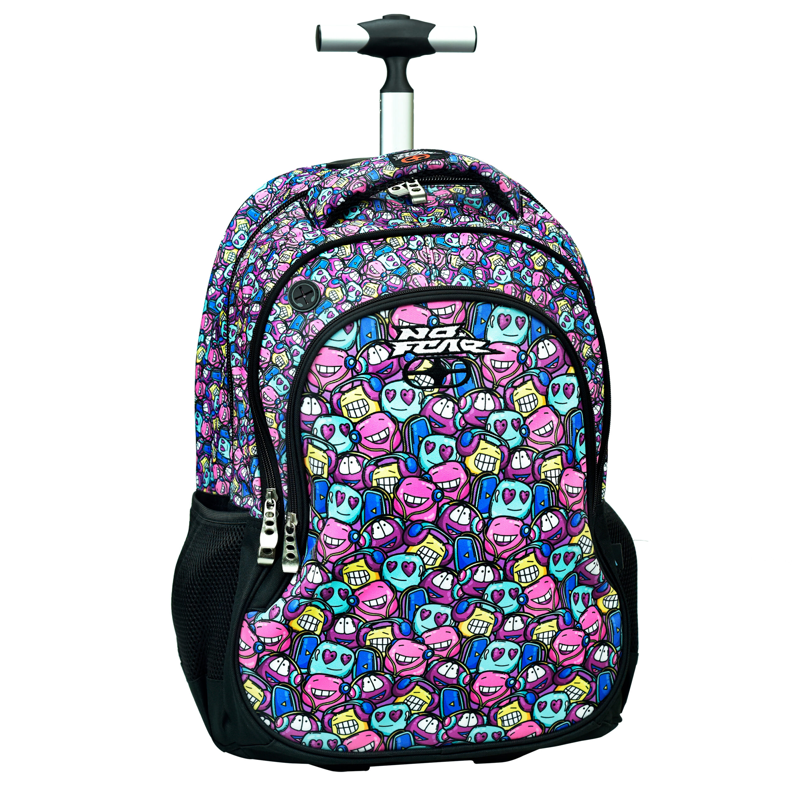 Troler No Fear Music ideal pentru scoala, poate fi folosit ca troler sau ghiozdan. Design modern, multifunctional, compartiment principal spatios, compartiment secundar, buzunar frontal, spate buretat, ergonomic si aerisit, maner buretat, material impermeabil.